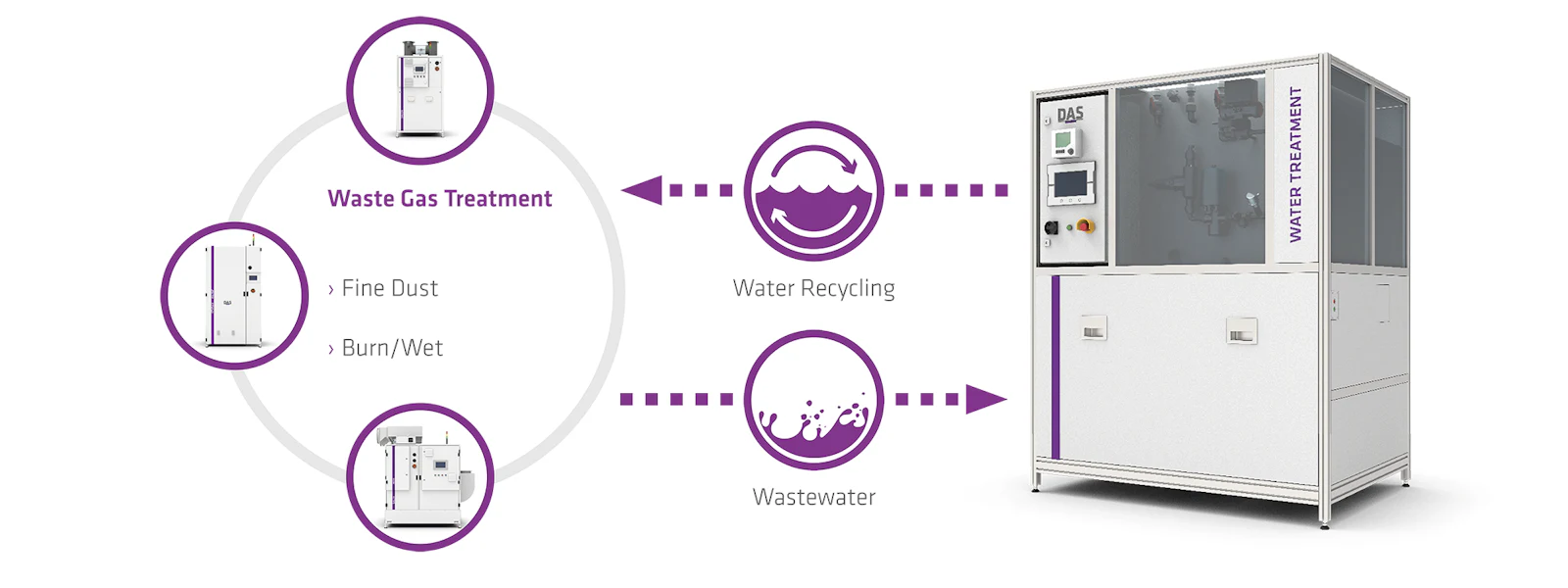 目前,市場已明確發出訊號,顯示對水循環利用技術的需求正在成長。 DAS Environmental Experts針對這項需求,由其廢氣和廢水處理團隊的專家開發了智慧解決方案。這種新型的使用端水處理系統增加了一個步驟,可以過濾廢氣處理系統廢水中的固體微粒(例如金屬氧化物),並允許將處理後的水循環回廢氣處理系統。高達90%的原始廢水可以回收。所採用的薄膜技術維護成本極低,投資回報快,並符合半導體製造商的ESG(環境、社會和治理)發展藍圖。